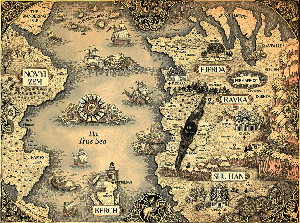 KERCH is an island nation whose government is essentially an oligarchy with an undercurrent of theocracy. The country worships the God GHAZEN, who is a God of Industry, trade and commerce and he is referenced frequently in government affairs and laws. Kerch is ruled collectively by THE MERCHANT COUNCIL, which consists of thirteen of the most prestigious and powerful families in the country. They make decisions on matters of business, state and religion and they aim to stay neutral regarding the conflicts of their surrounding neighbors. Otherwise, Kerch is known for its wealth and ruthless businessmen and is considered the financial capital of the world. Their currency is called KRUGE ( pronounced "kroo-guh" with a rolled r ) and KERCH is the language usually spoken, but many of the Kerch also speak RAVKAN.Because they consist of four islands, Kerch is very vulnerable to fire and disease. They've had a few bouts of plague in their capital city of KETETRDAM, one of which was about a century ago ( from the events of Six of Crows / Crooked Kingdom ). It was the largest and it resulted in the Merchant Council banning the burial of the dead within the city limits. Instead, they burn the dead on the Reaper's Barge out at sea — however, if one has enough money and power, them and/or their family members can be buried in a cemetery in the country.